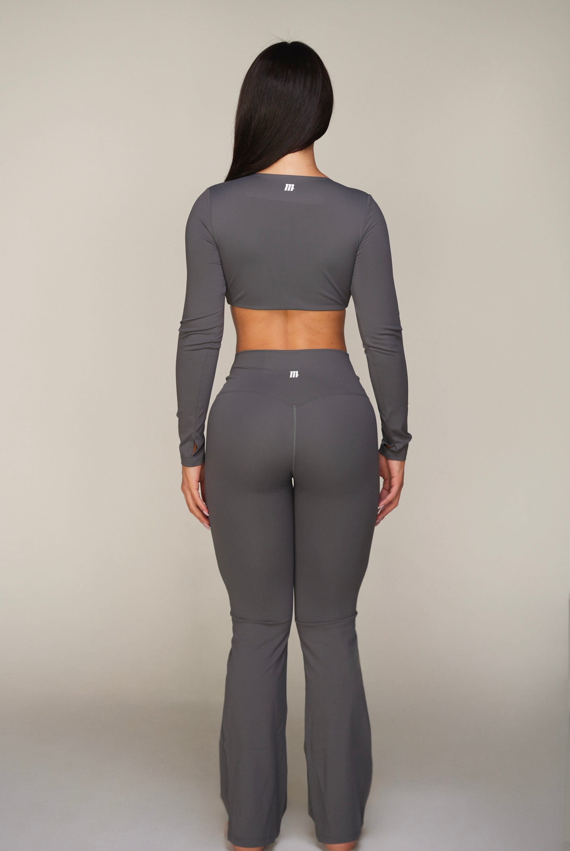 The Magnetic Aura series is designed for women who command attention. A sculpting crop top with a flattering V-neckline and long sleeves, paired with high-rise flared pants that hug the waist and flow with every step.